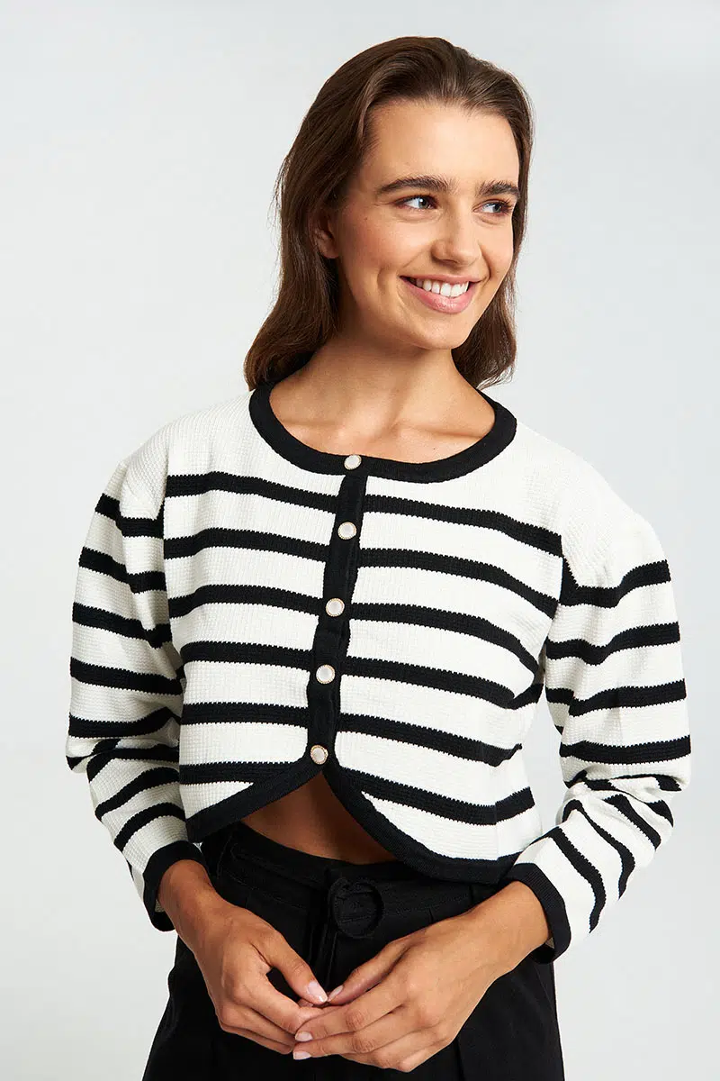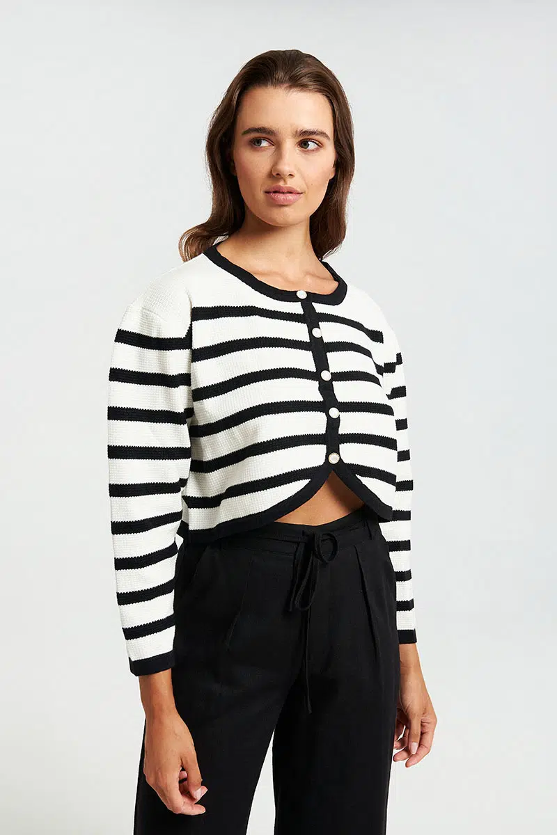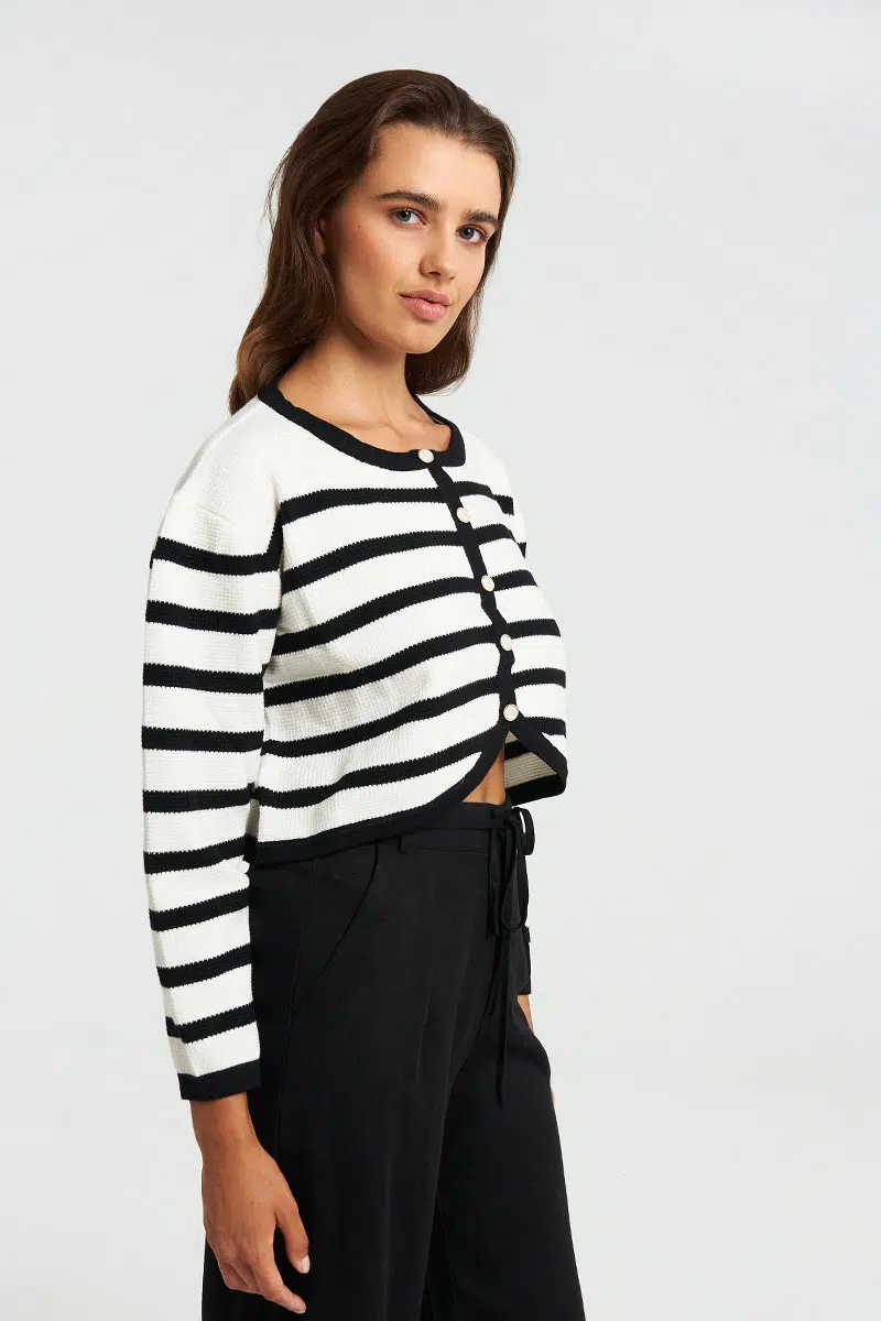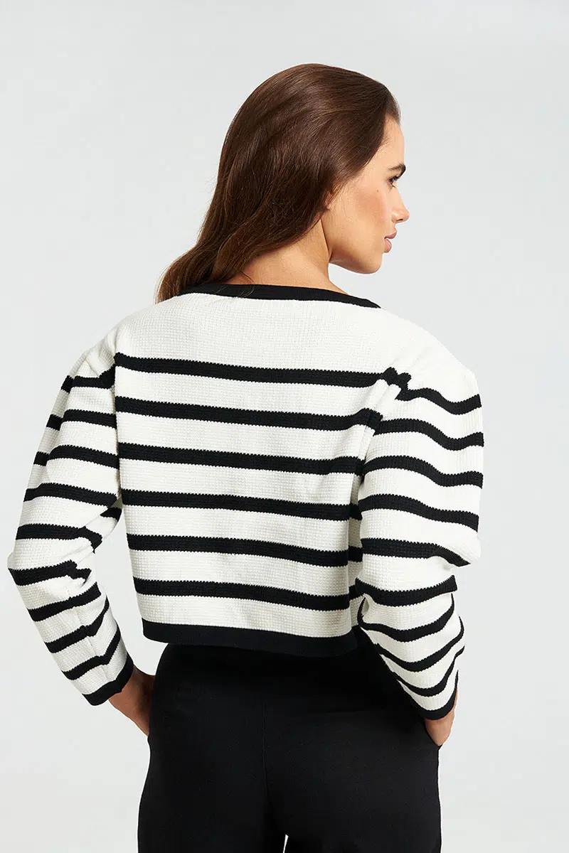 Πλεκτή ριγέ ζακέταμε σχέδιο αντίθεση στη λαιμόκοψη.
