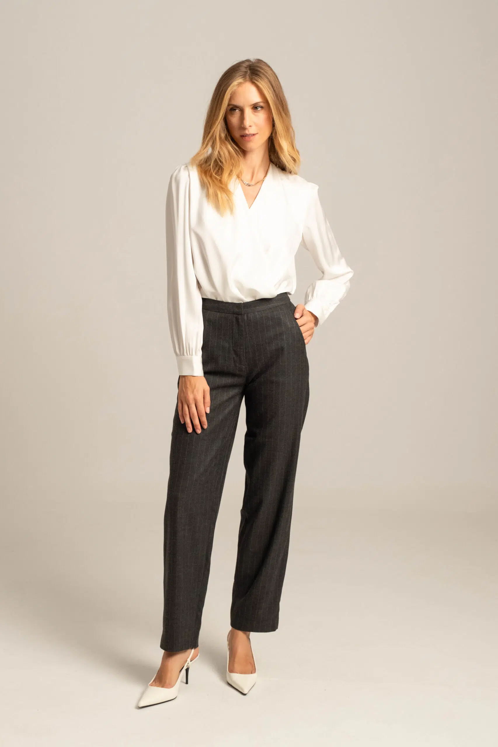 Ψηλόμεσο ριγέ παντελόνι σε ίσια γραμμή CORNALIE
