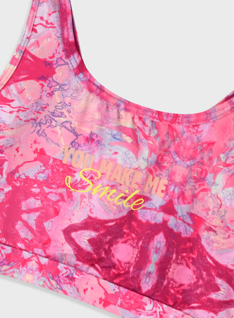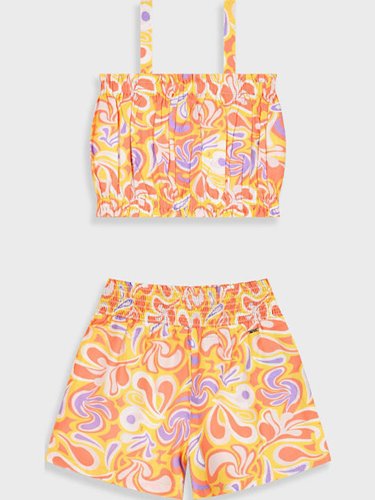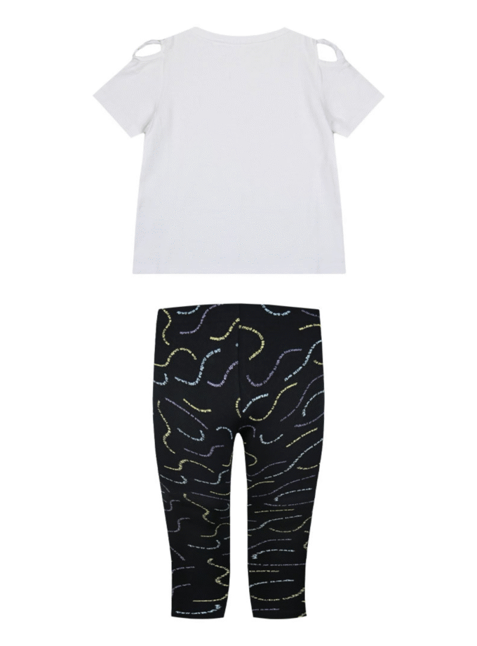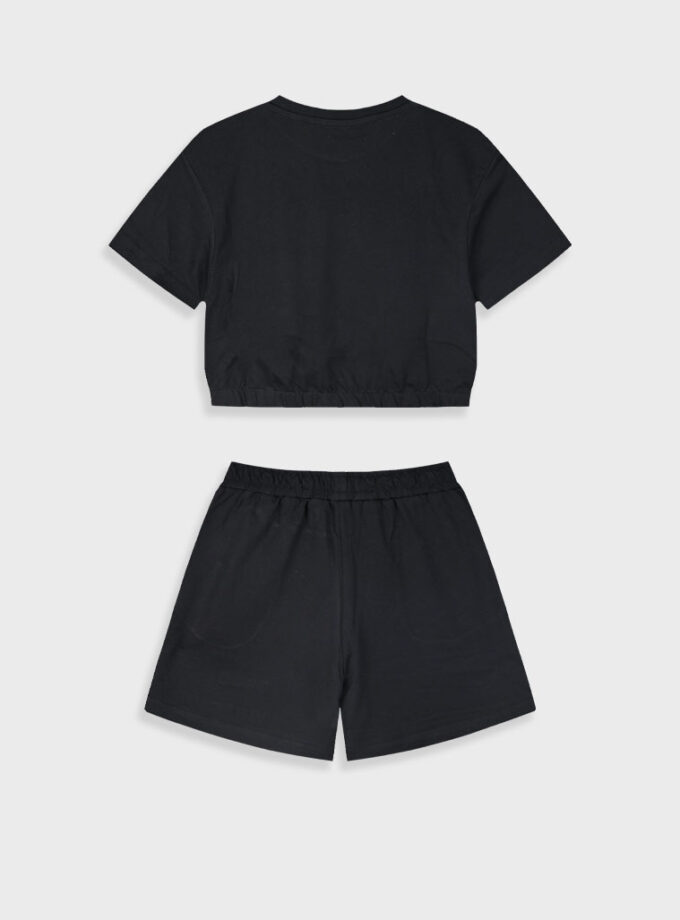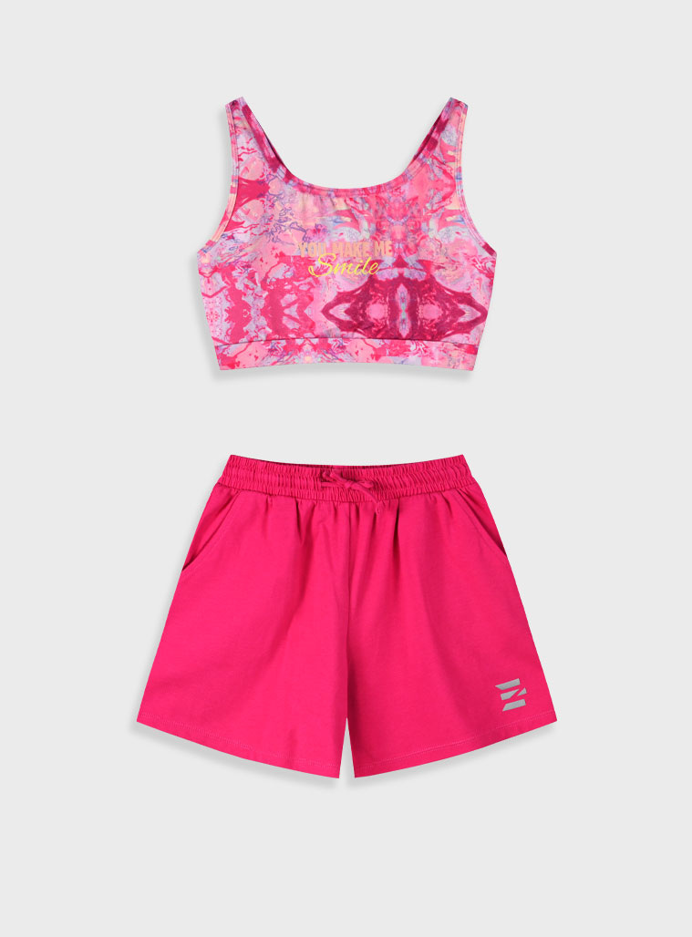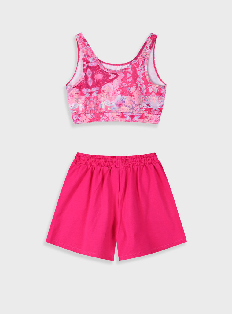 Αθλητικό σετ από κοντή εμπριμέ αμάνικη μπλούζα με τύπωμα με σορτς για κορίτσι