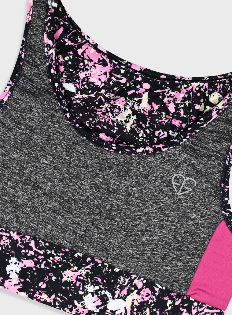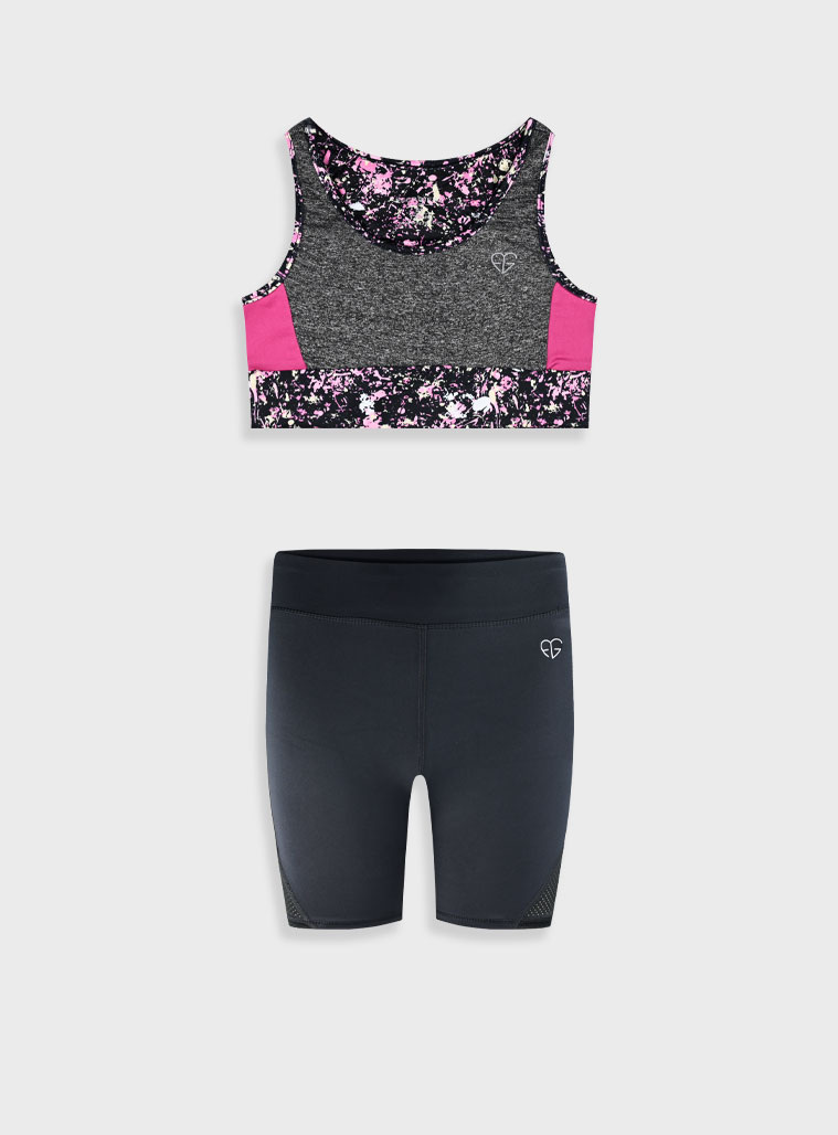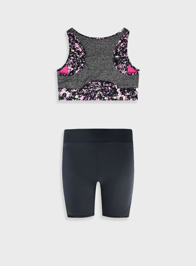 Αθλητικό σετ από κοντή εμπριμέ αμάνικη μπλούζα με ποδηλατικό κολάν για κορίτσι