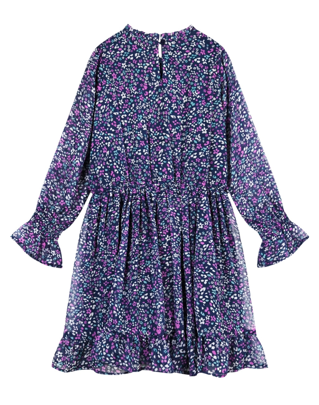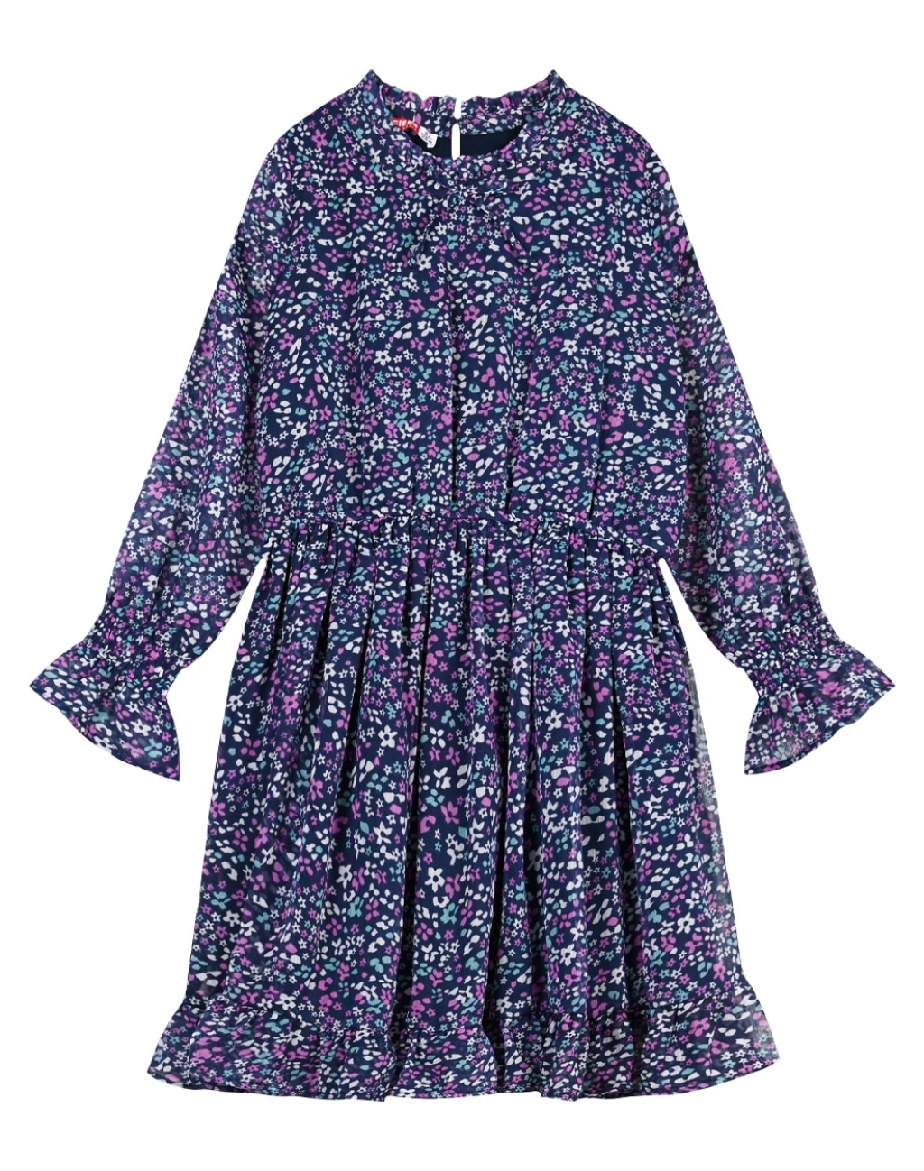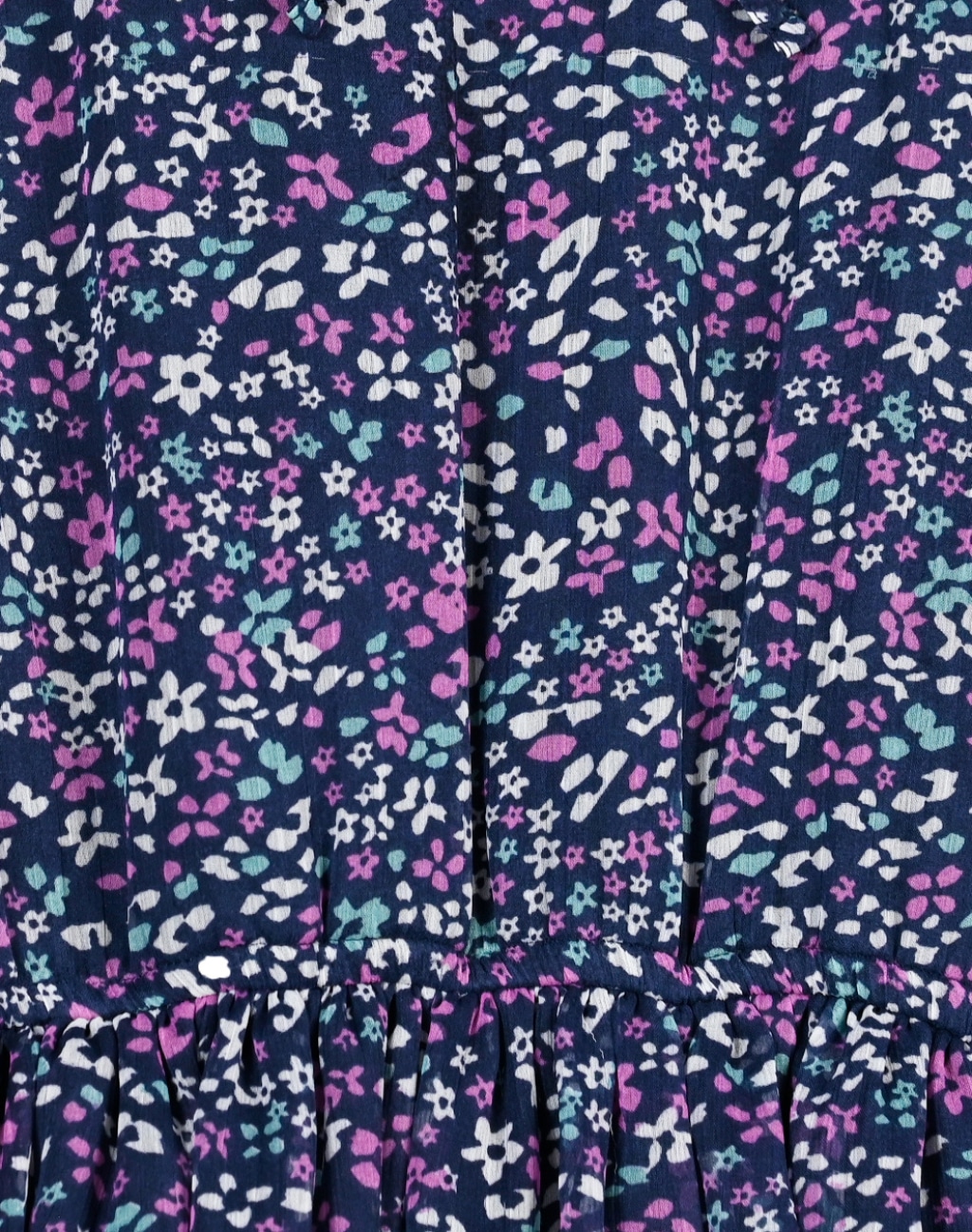 Φλοράλ φόρεμα με σφυγγοφολιά στα μανίκια και στην μέση και φραμπαλά στα μανίκια,