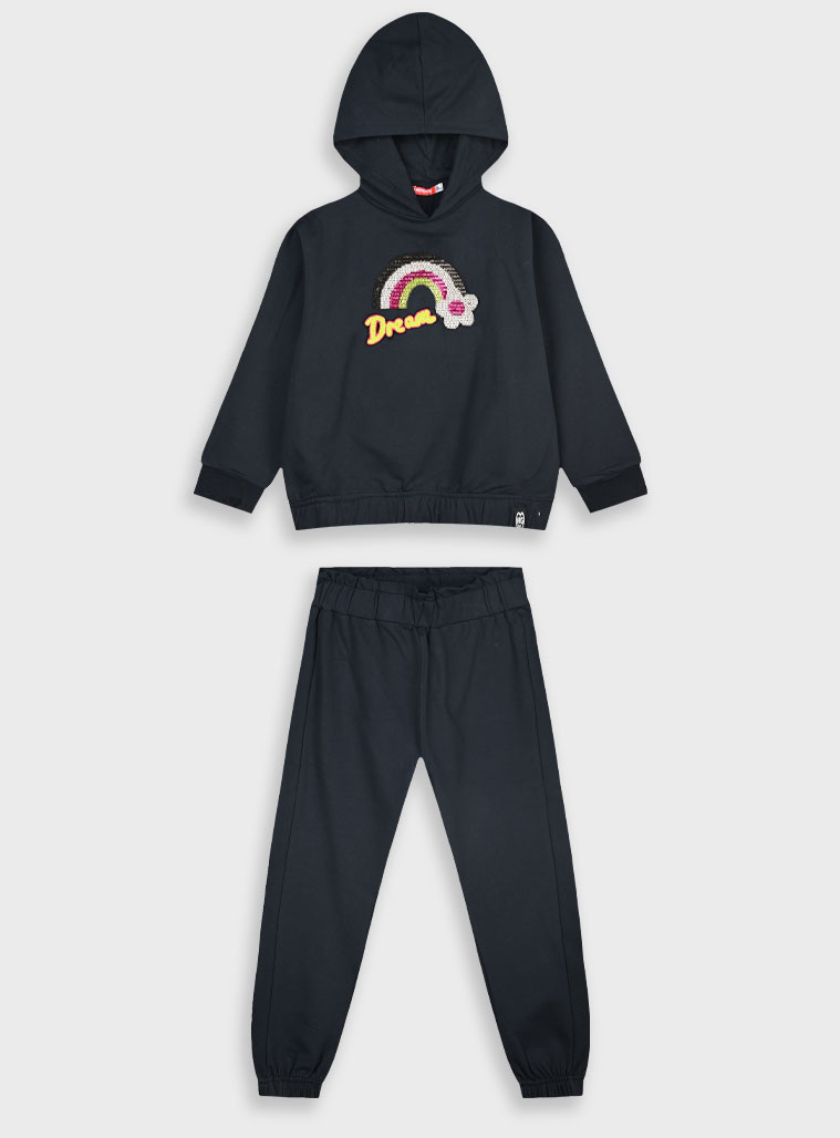 Φούτερ φόρμα 2 τεμαχίων με κουκόυλα και τύπωμα για κορίτσι