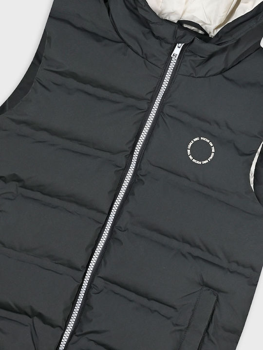 Το μπουφάν διαθέτει κουκούλα, προσφέροντας επιπλέον κάλυψη και άνεση, ενώ η αμάνικη σχεδίαση διευκολύνει τη φόρμα και την καθημερινή χρήση.