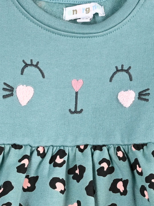 Βρεφικό φόρεμα φούτερ με allover τύπωμα και κορδέλα για τα μαλλιά.