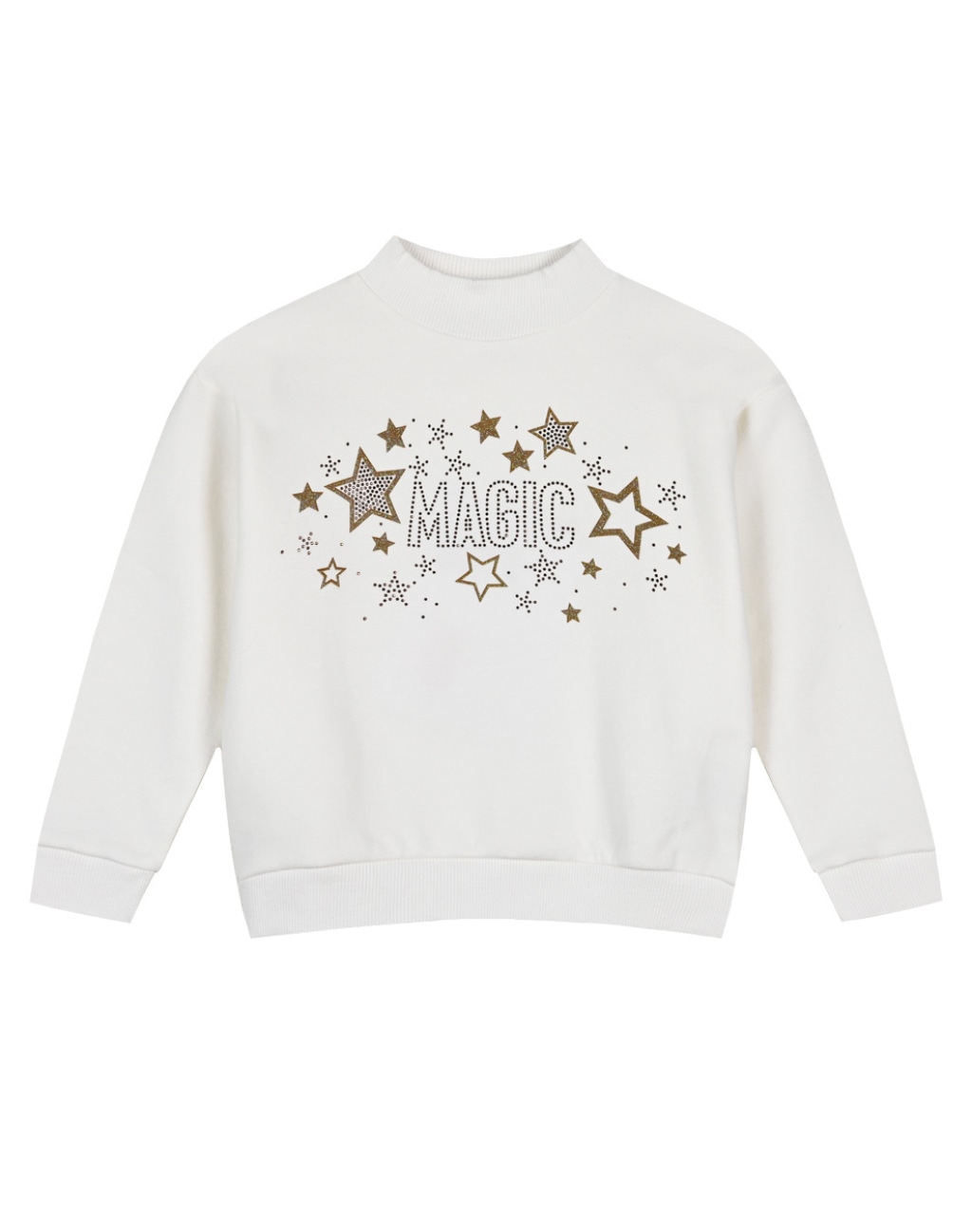 Μπλούζα φούτερ με τύπωμα , στοιχεία γκλίτερ και στρας για κορίτσι
