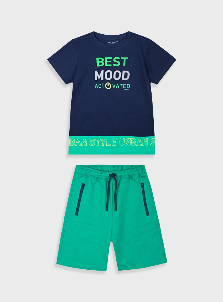 Σετ με κοντομάνικη μπλούζα με ανάγλυφο τύπωμα και βερμούδα για αγόρι