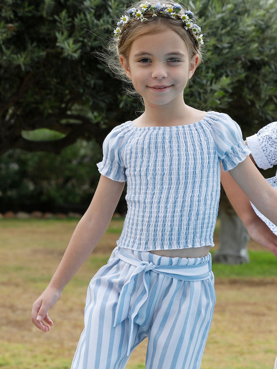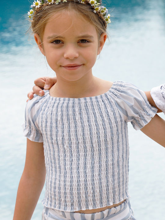 Ριγέ σετ που αποτελείται από βαμβακερή μπλούζα με σφηκοφωλιά.