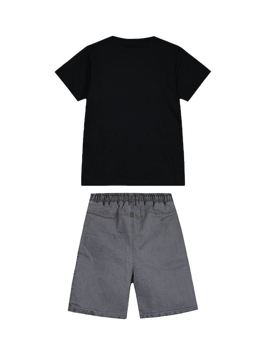 Παιδικό σετ μακό 2 τεμάχια μπλούζα με τύπωμα και τζίν βερμούδα για αγόρι.