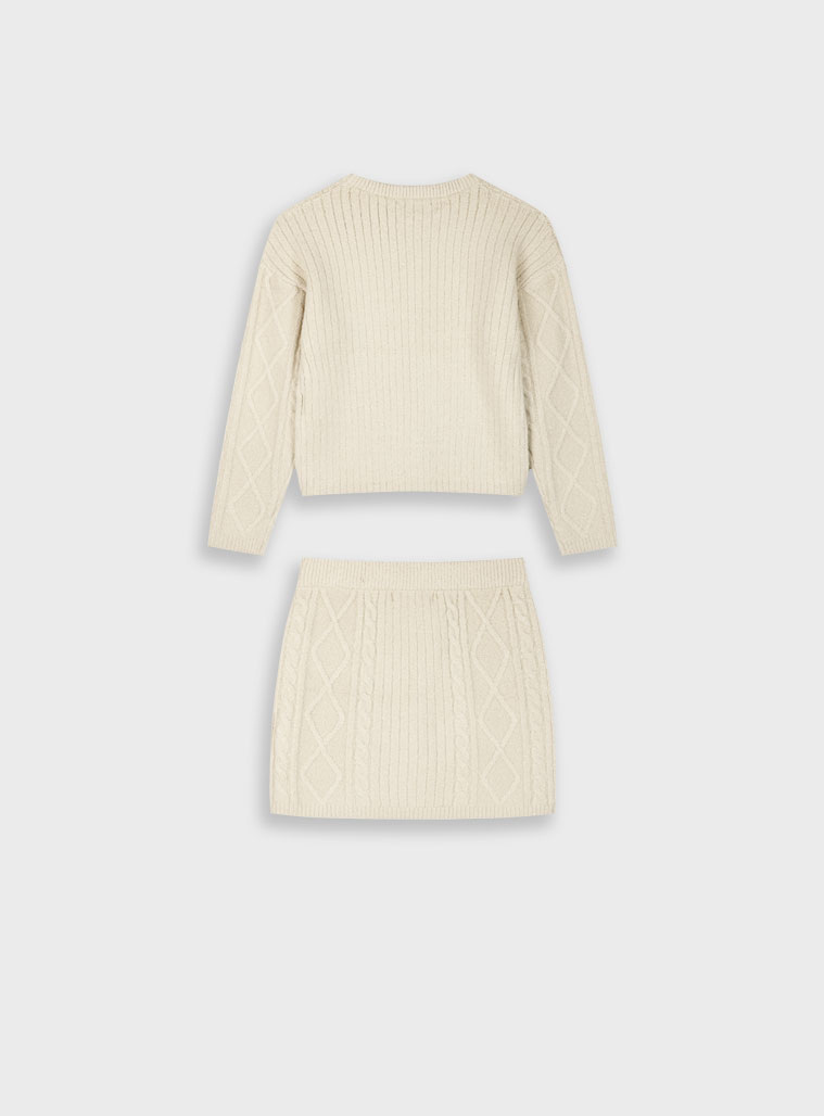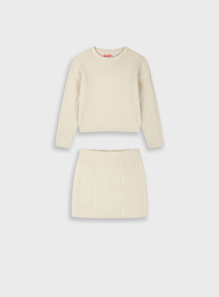 Πλεκτό σετ με πουλόβερ και φούστα με σχέδιο για κορίτσι , άνετη και στυλάτη σε κάθε εμφάνιση