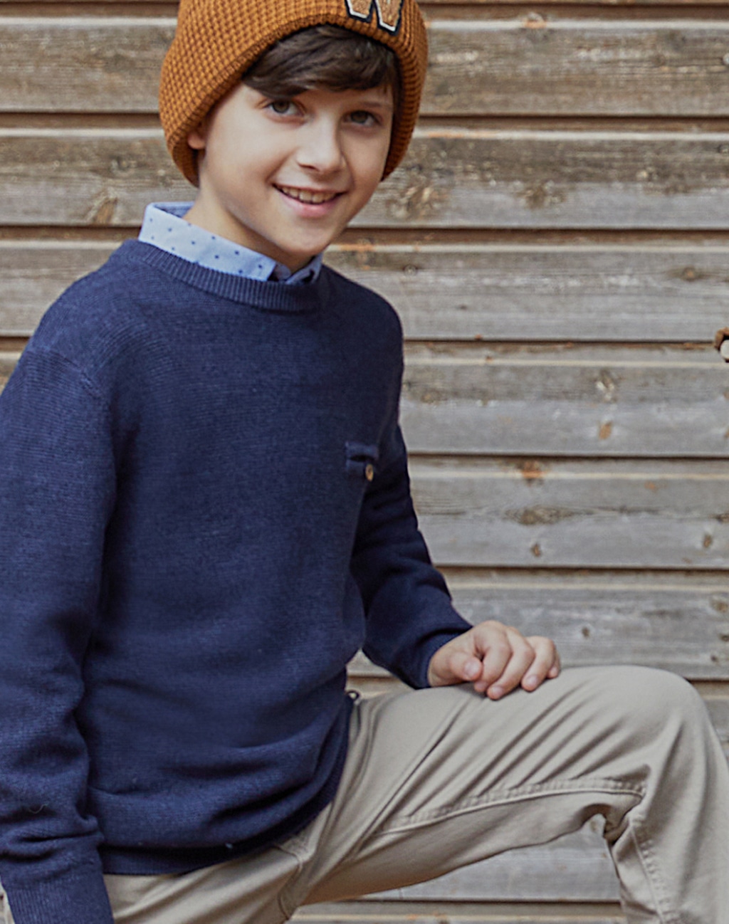 Εφηβικό μονόχρωμο πουλόβερ με διακοσμητική τσέπη