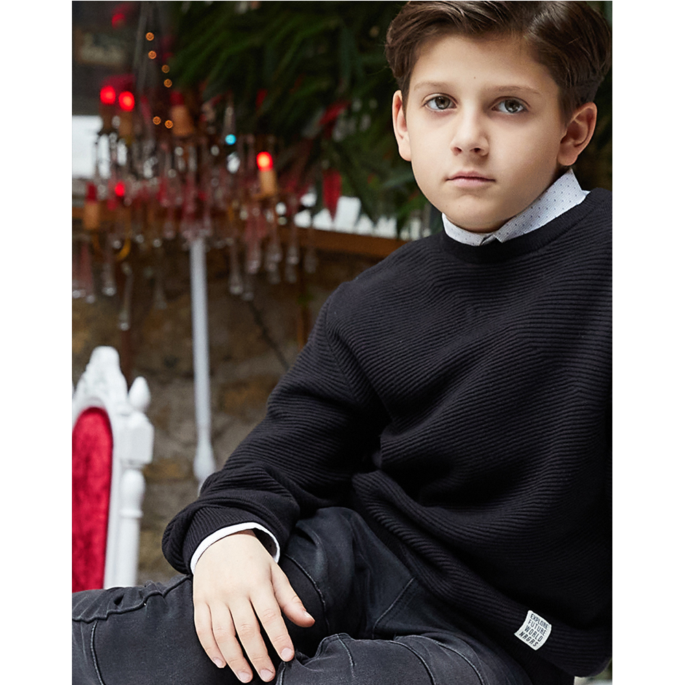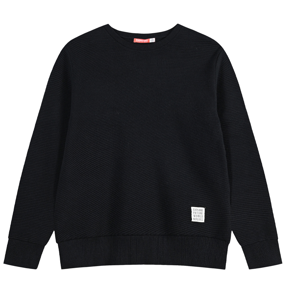 Πουλόβερ μονόχρωμο με υφαντό έμβλημα στι τελείωμα για αγόρι