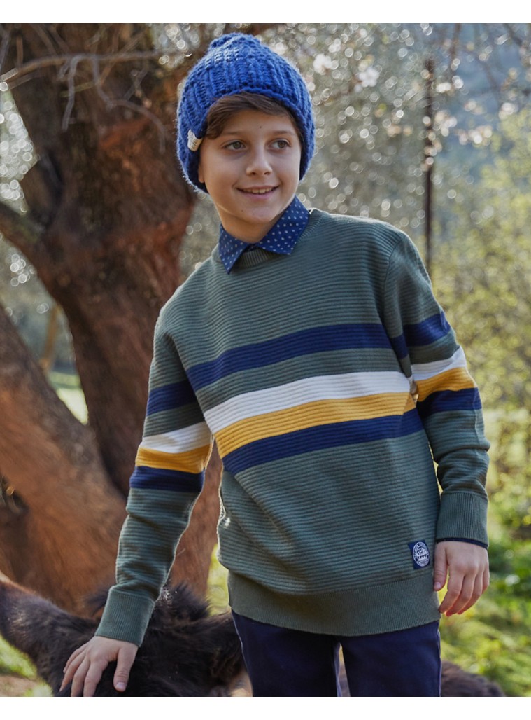 Πουλόβερ ριγέ με υφαντό έμβλημα στο τελείωμα για αγόρι