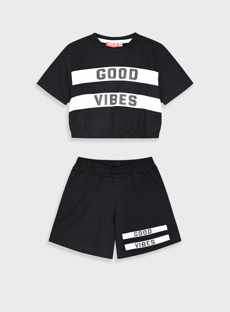 Σετ από κοντομάνικη μπλούζα με τύπωμα και σορτς με τύπωμα για κορίτσι