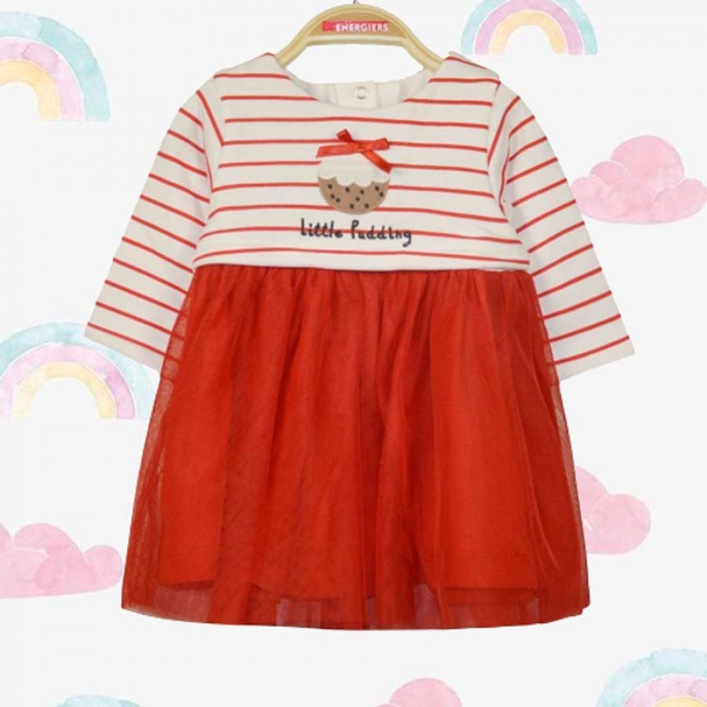 Βρεφικό ριγέ φόρεμα με τούλινη φούστα και βαμβακερή εσωτερική φόδρα .