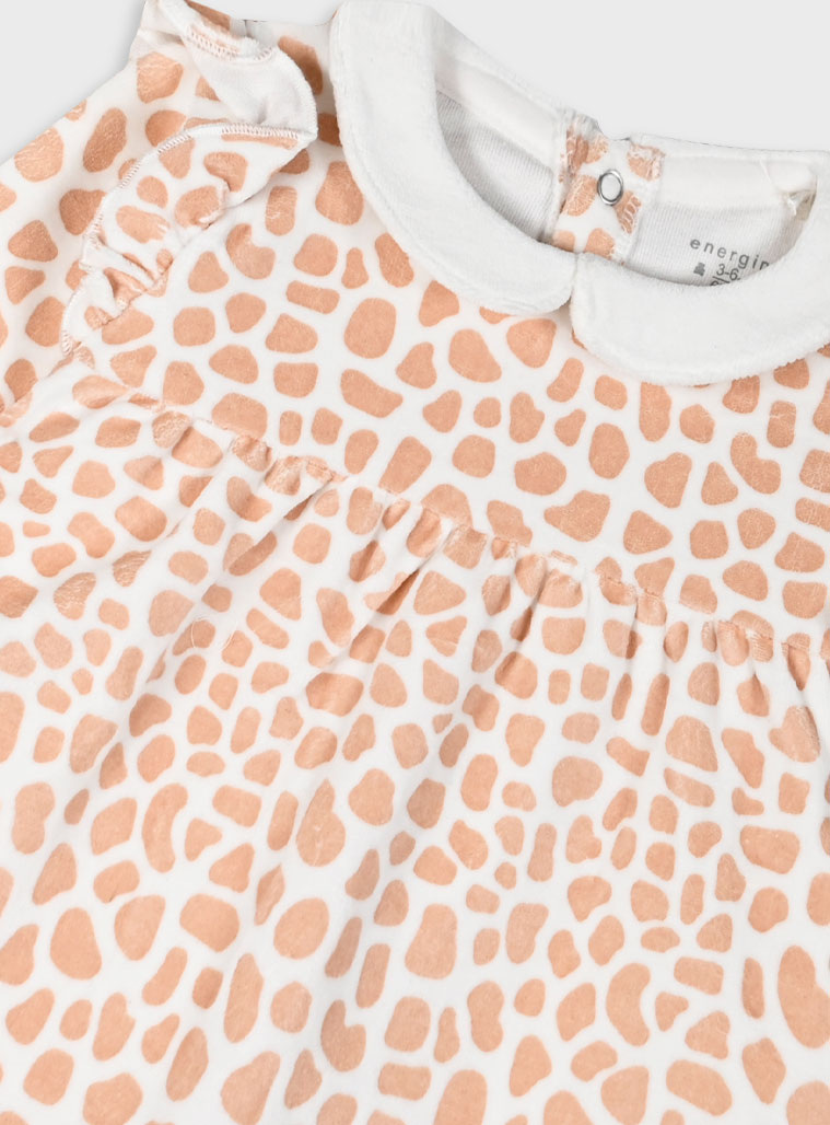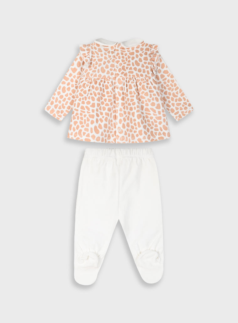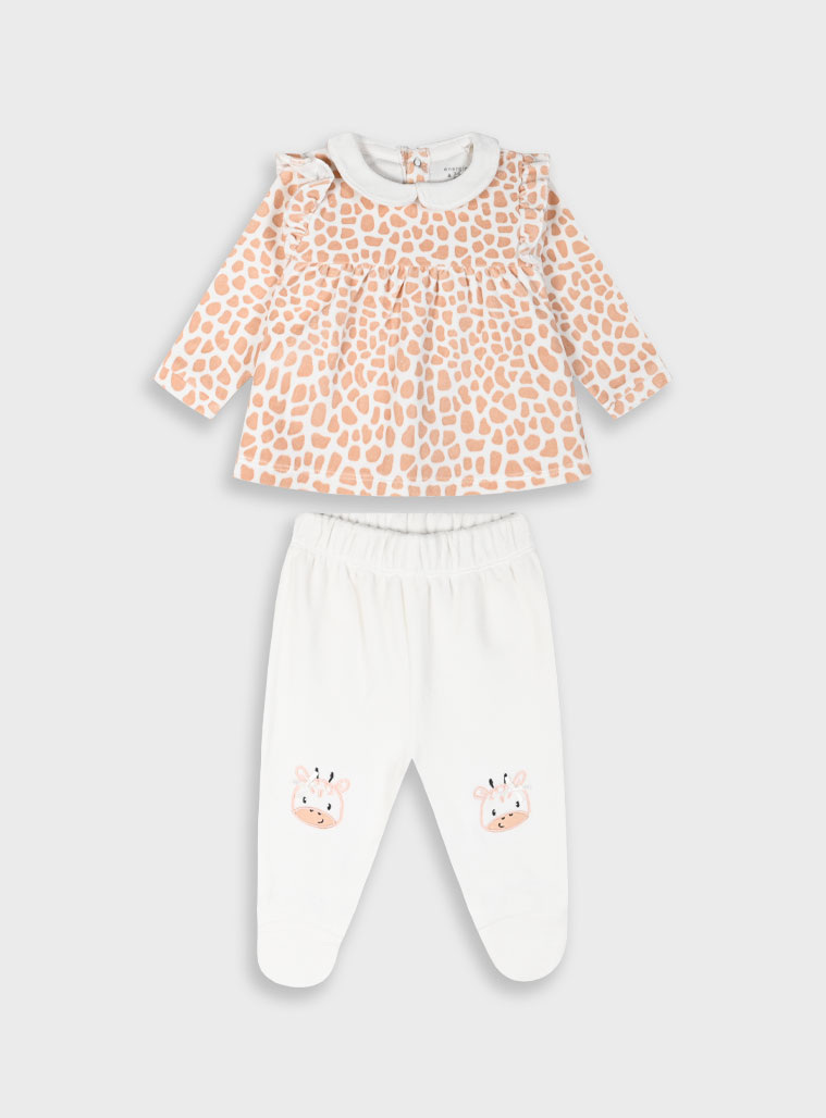 Βρεφικό βελουτέ σετ με φραμπαλά στους ώμους και κέντημα στα γόνατα για κορίτσι για τις απογευματινές βόλτες