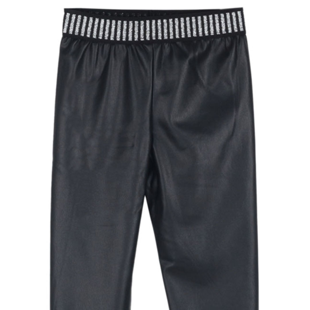 Αυτό το κοριτσίστικο μακρύ κολάν τύπου δερματίνης σε μαύρο χρώμα είναι η ιδανική επιλογή για κομψές και ζεστές εμφανίσεις τις κρύες ημέρες.