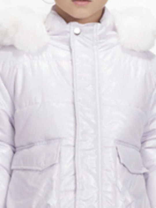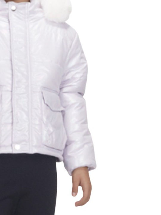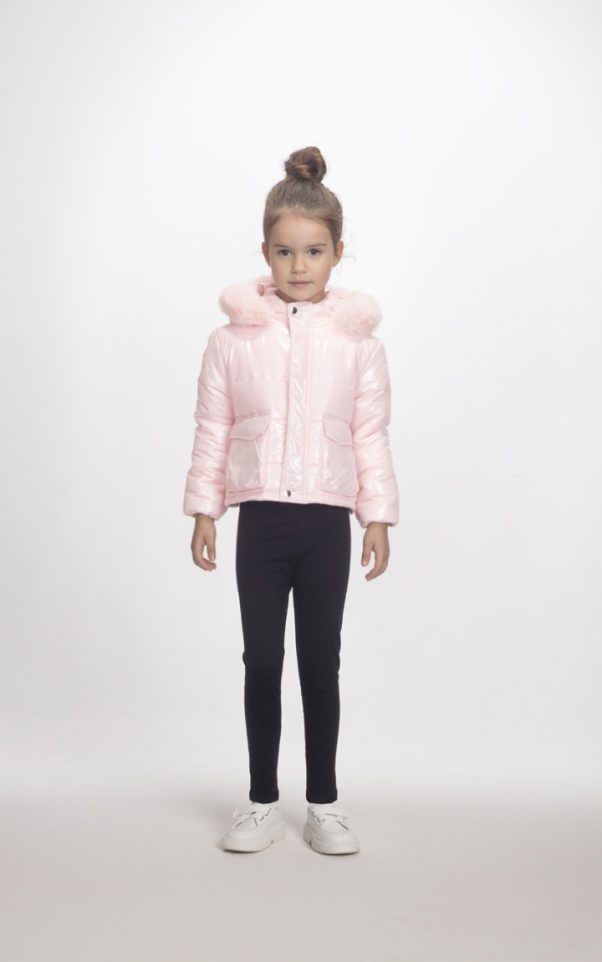 Το μπουφάν διαθέτει κουκούλα, προσφέροντας επιπλέον προστασία και στυλ για τις μικρές σας φίλες.
