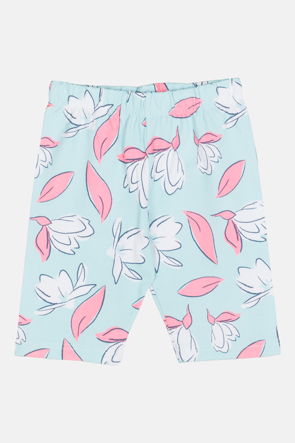 Μπουστάκι aqua με αθλητικό κόψιμο στην πλάτη και φυλλώδες μοτίβο με fluo ροζ λεπτομέρειες.