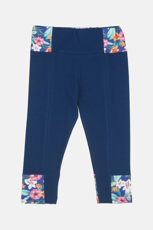 Σετ με μπλέ φλοράλ τοπ και καπρι κολάν