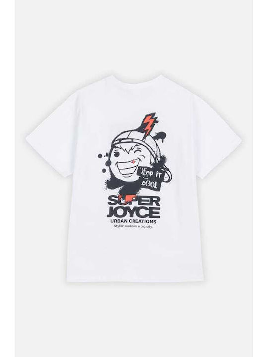 Μπλούζα λευκή κοντομάνικη με τύπωμα προς και πίσω