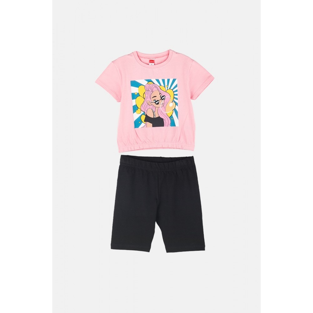 Ένα εξαιρετικά ποιοτικό κοριτσίστικο καλοκαιρινό σετ με ποδηλατικό κολάν, κατασκευασμένο από 95% βαμβάκι και 5% πολυεστέρα. Το βαμβακερό ύφασμα αγκαλιάζει απαλά το δέρμα, ενώ η προσθήκη ελαστίνης προσφέρει την απαραίτητη ελαστικότητα για άνετη κίνηση.