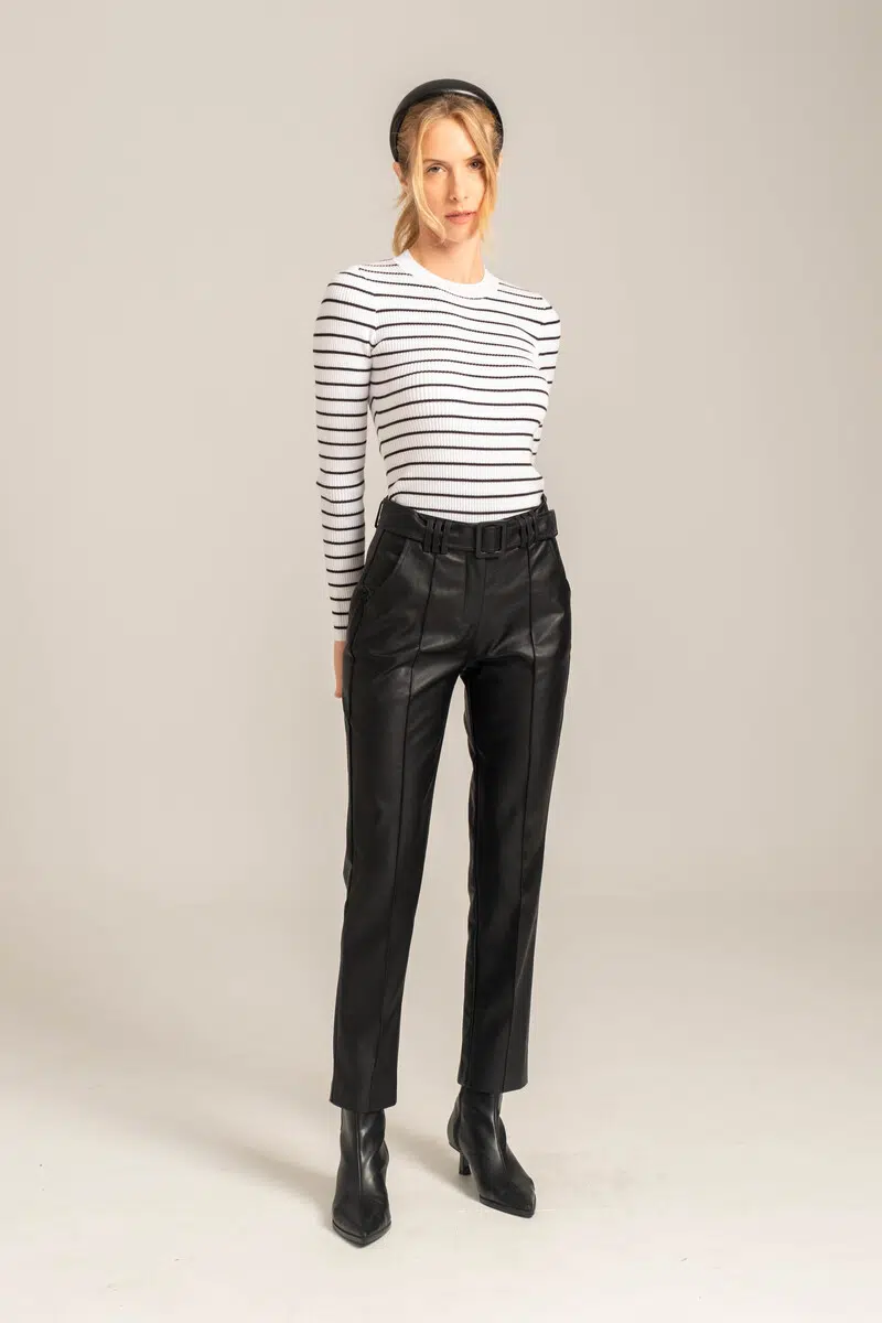 Παντελόνι απο δερματινη με ζωνη MADISON