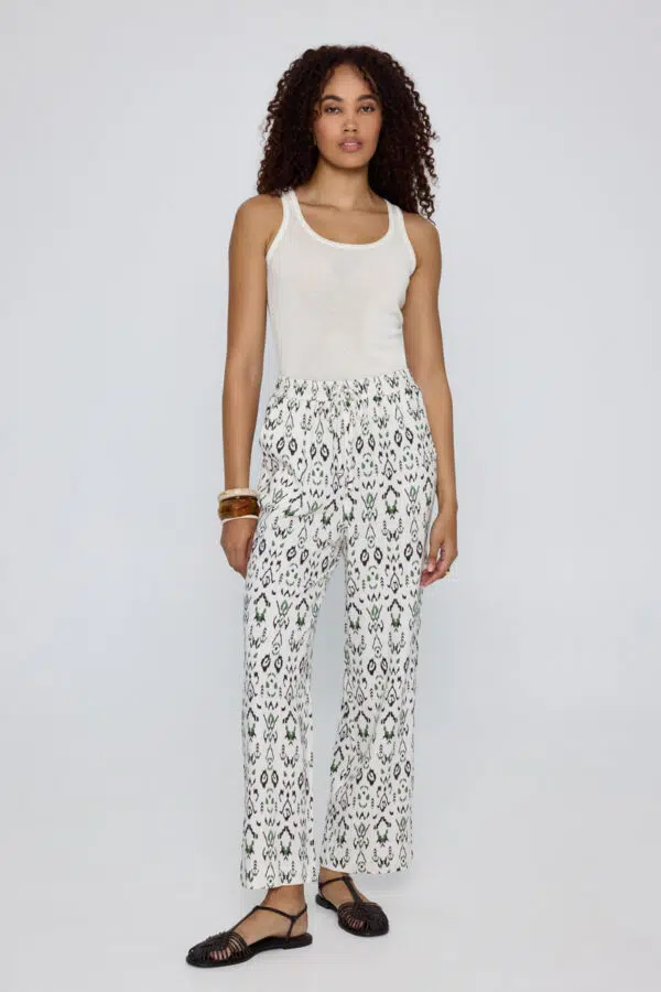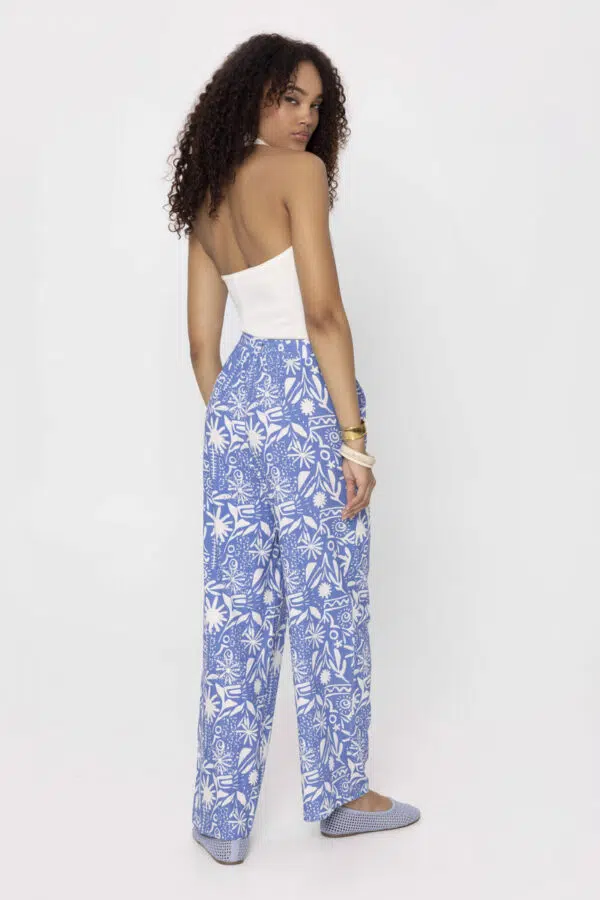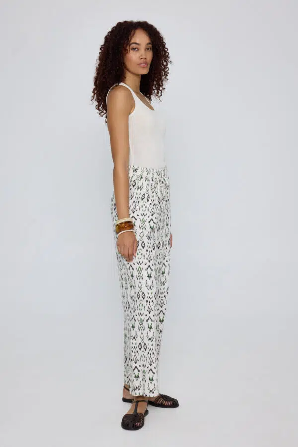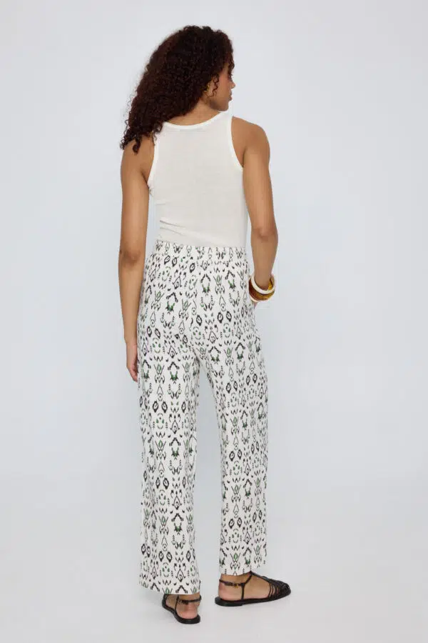 Επιλέξτε αυτό το άνετο και κομψό παντελόνι από τυπωμένο λινό ύφασμα για καθημερινές εμφανίσεις που ξεχωρίζουν με άνεση και στυλ.