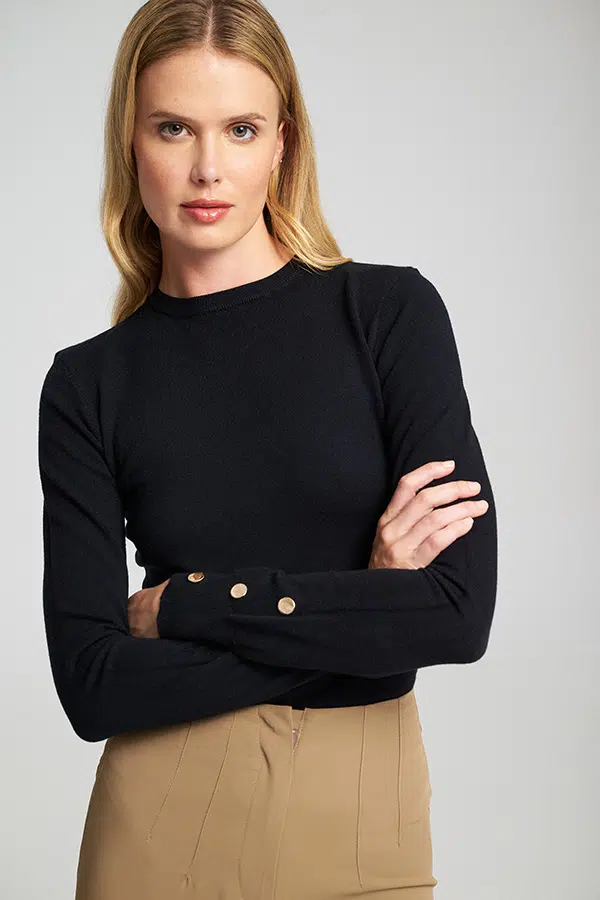 Στρογγυλή λαιμόκοψη: Διαχρονικό σχέδιο που ταιριάζει εύκολα με πουκάμισα, σακάκια ή παλτό.